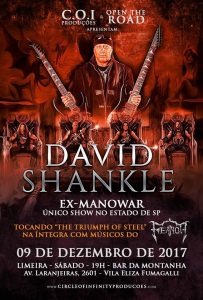 O guitarrista David Shankle que participou no álbum The Triumph Of Steel com a banda Manowar estará se apresentando em